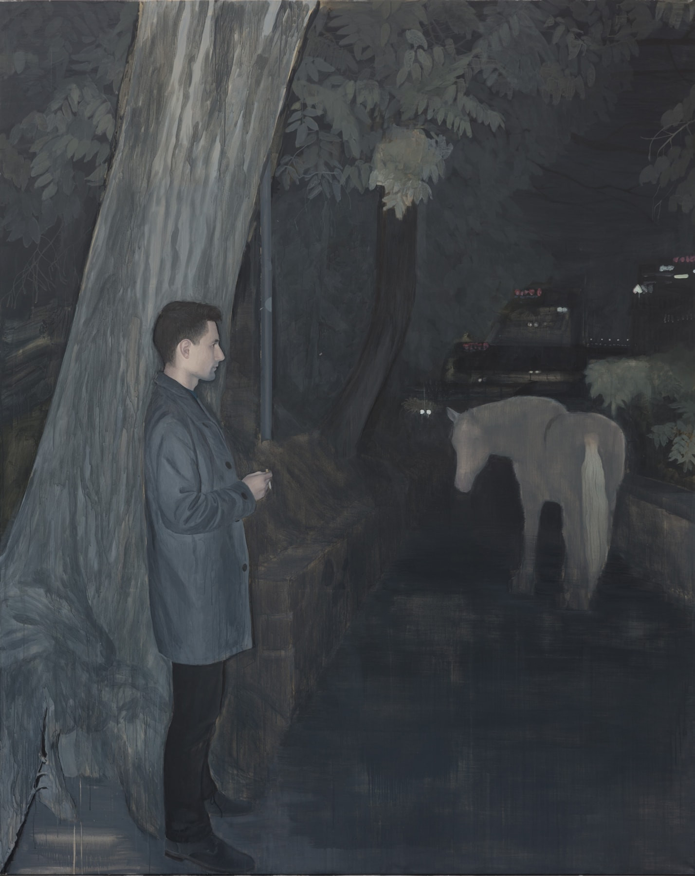 In my artistic practice I concern myself primarily with the everyday, developing themes and subjects that follow from this focus (interpersonal relations, school environments, and the like). The common denominator of the locations, situations and objects which I worked with in my diploma project is a dominance of long time periods and their anchoring in the unremarkable days of several stages of my life. In the paintings, various epochs of my life, as well as highly specific recollections, interweave and overlap, creating situations without temporal boundaries that in some form took place in the past, but could be repeated again. Their meaning is thus ambiguous, emerging during the process of painting, changing and stratifying.